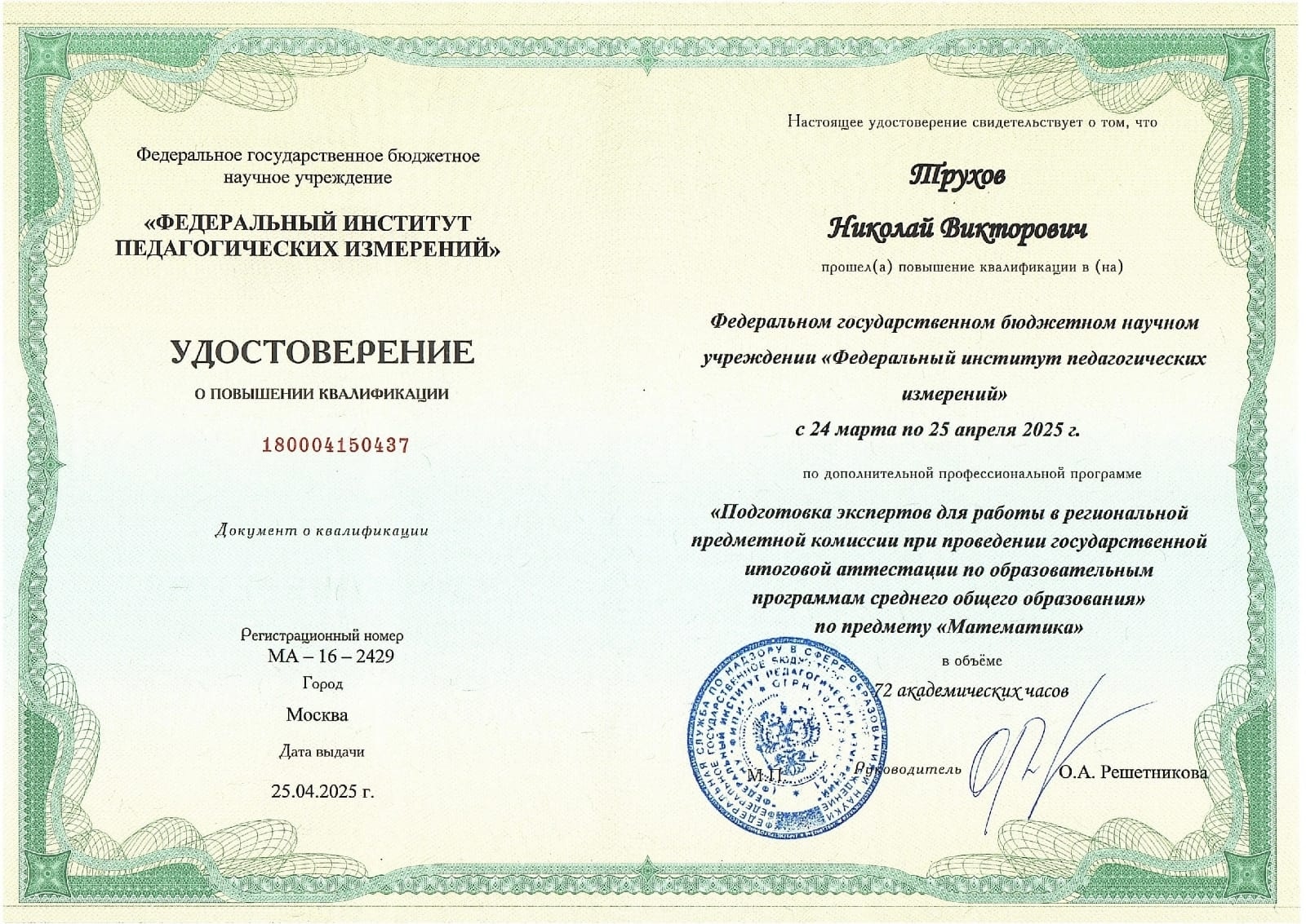 «УмНика» всегда рада сотрудничеству с активными преподавателями, знающими предмет и любящими свое дело. Ещё один из наших математиков — Трухов Николай Викторович — получил квалификацию эксперта предметной комиссии ЕГЭ по математике.